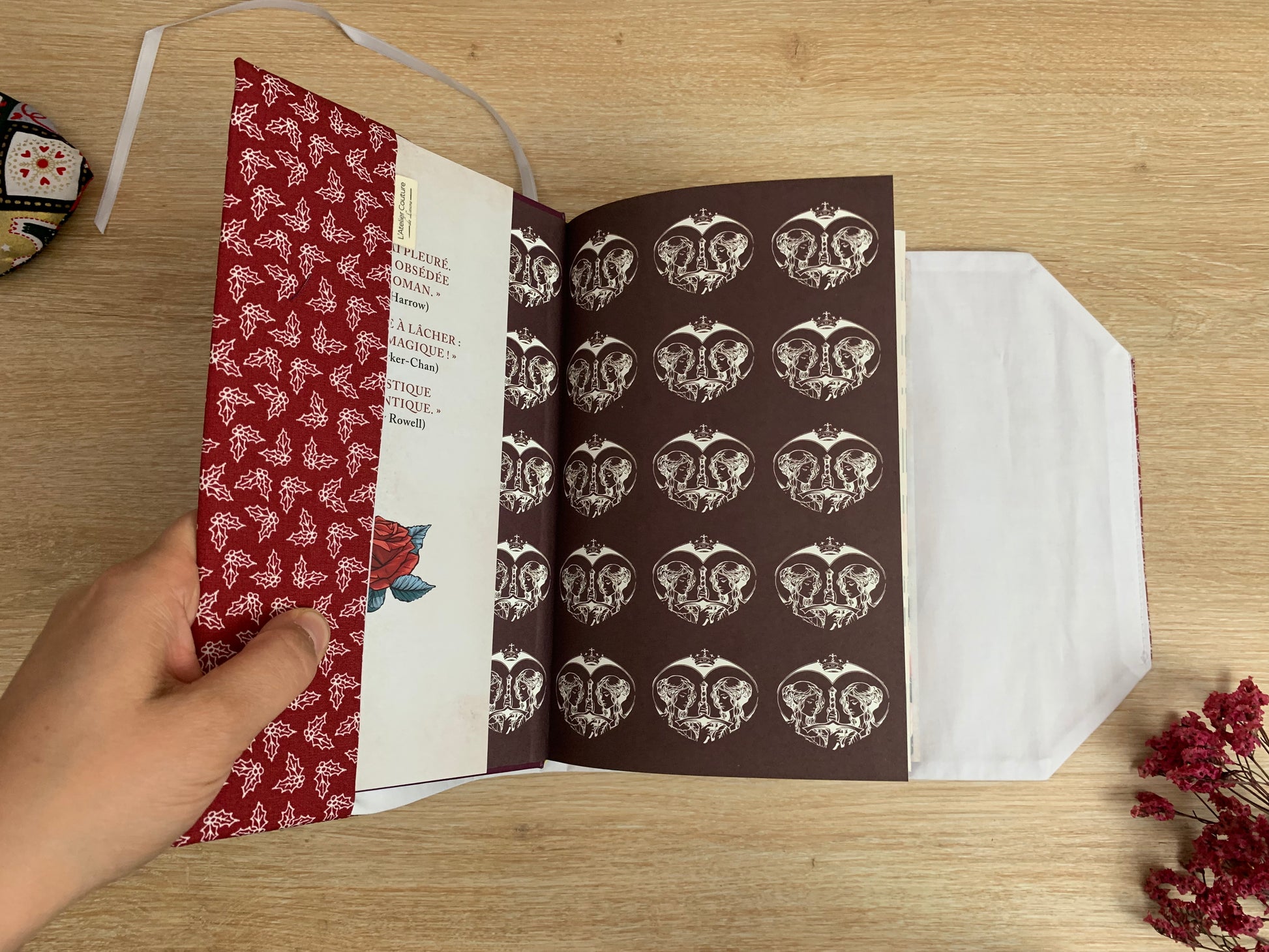 - Un Ruban marque page est présent sur chaque couverture. Il est assorti au couvre-livre en fonction des stocks disponibles.