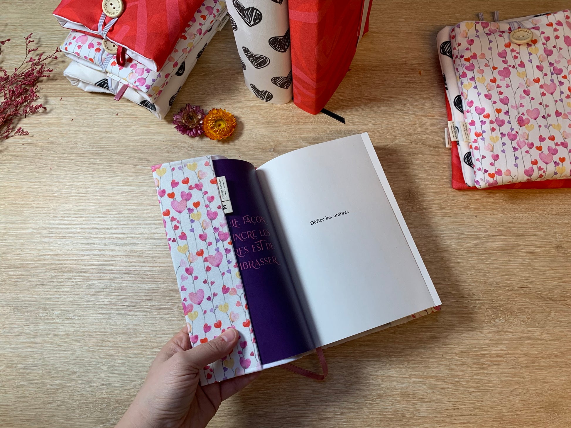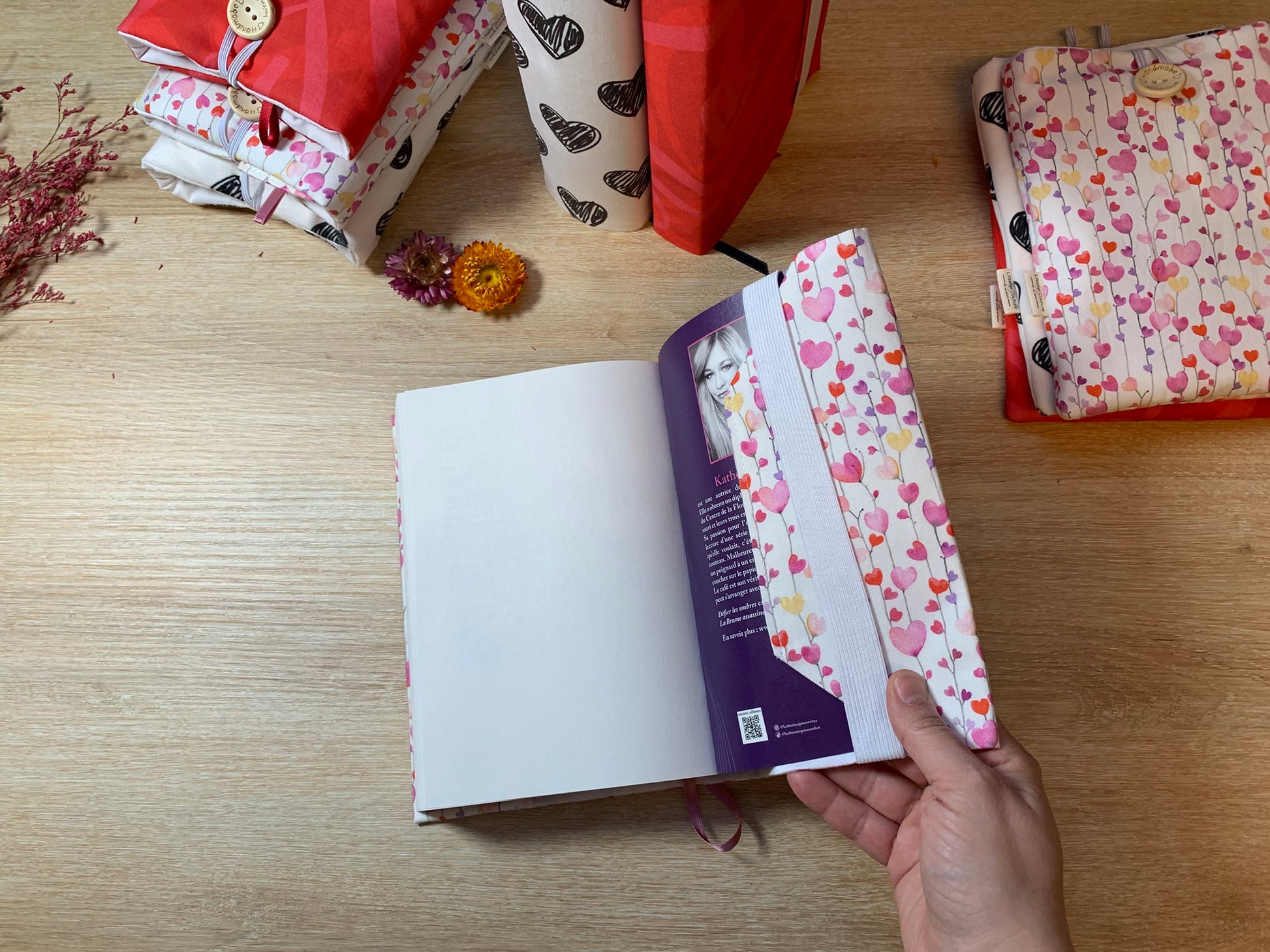 Le couvre-livre est un indispensable des amoureux des livres. Fleuri, punchy ou discret, il est parfait pour protéger vos lectures en cours, que ça soit des regardes indiscrets (qui a envie de montrer un homme torse-nu dans le métro ou une tête de mort chez le pédiatres …), ou des dommages fréquents : coin de couvertures qui se dédouble, traces de doigts, dorures qui s’effacent, …